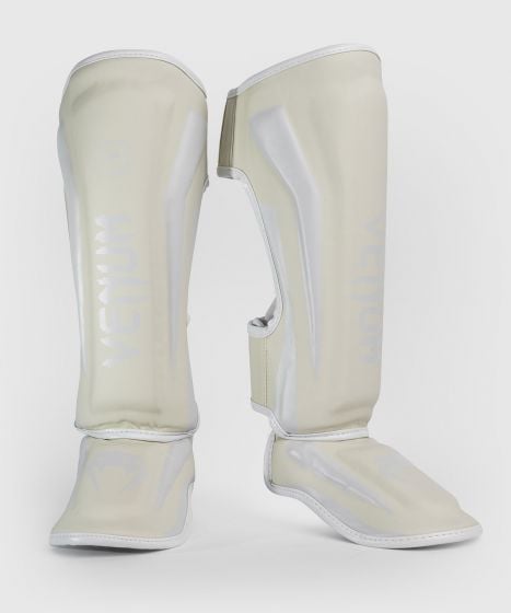 VENUM (ヴェナム/ベノム) エリートスタンドアップ シンガード レガース すねあて ホワイト・ホワイト UFC公式サプライヤー 高密度フォーム 2本マジックテープ(ベルクロ式)固定 トレーニング・スパーリング用 キックボクシング ムエタイ MMA 総合格闘技 空手